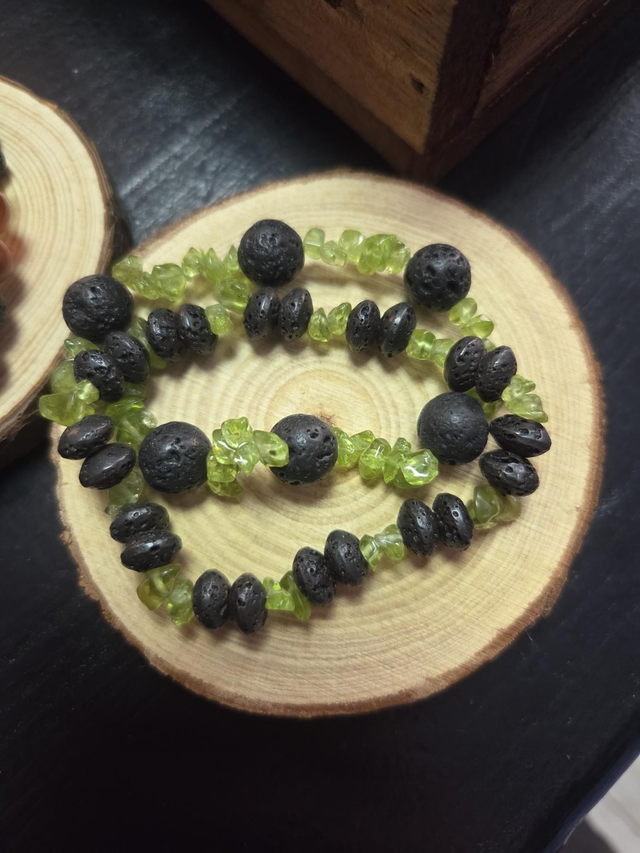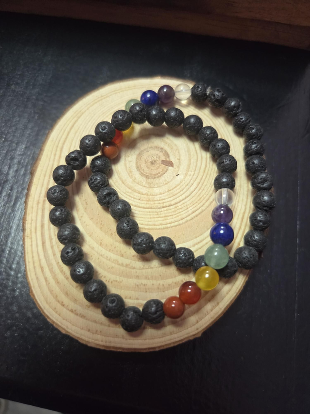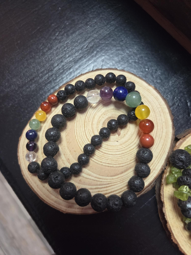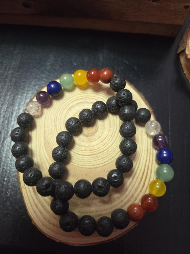 Pulseras de lava Canaria natural que son utilizadas para ayudar a mantener los pies en la tierra y liberar el estrés. Simboliza la fuerza interior y la transformación.