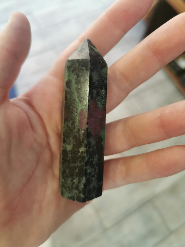 Punta Fase Lunar Zoisite y Rubí